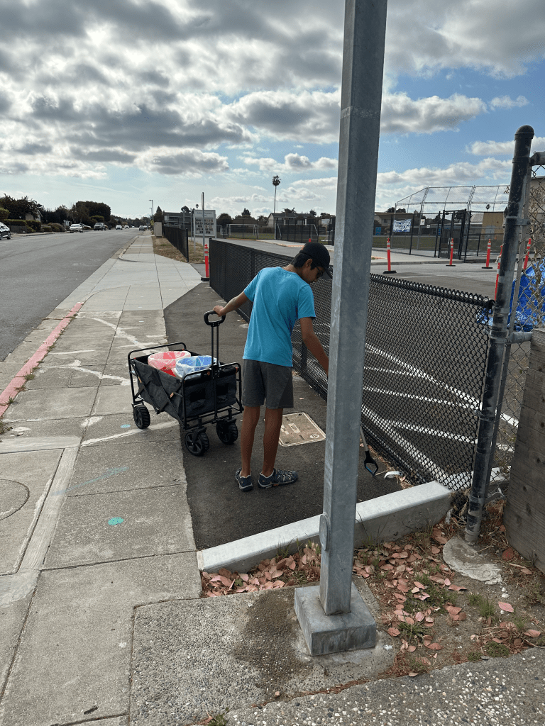Today was not that eventful. The recycling blue bin got just a soda can, an empty water bottle, a glass bottle. The trash orange bin on the other hand almost got full – most bits of paper, maybe 10 cigarette buds, 3-4 ziploc bags and the mystery X-Large green Cool with it juice that was honestly semi tempting (my guess is it was either a kid that left it there or someone working on the houses)