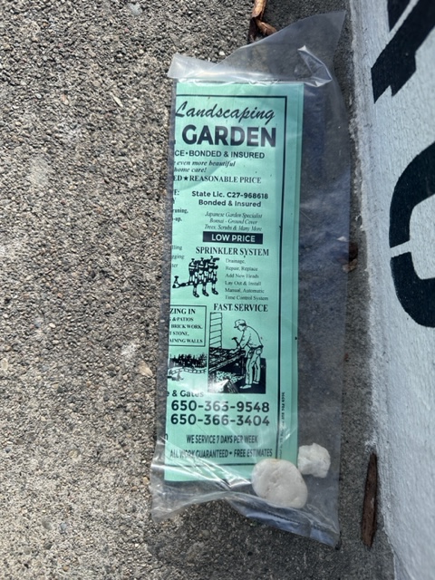 For other trash, I found a cracked wine bottle with jagged edges, which again, can be dangerous for animals if they poke their head there, and a lot of pamphlets for advertising in drains.